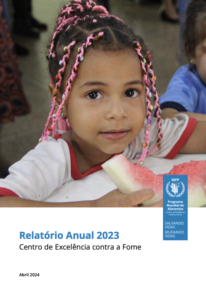 In 2023, the World Food Programme (WFP) faced growing challenges due to humanitarian emergencies exacerbated by conflicts and climate disasters, hampering its mission to save lives. Meanwhile, the life-changing development work carried out by the WFP Centre of Excellence against Hunger in Brazil gained prominence, promoting lasting solutions for food security and sustainable agriculture. In this annual report, learn how the Centre of Excellence’s work supporting strategies to reduce inequalities in countries of the global South, strengthening areas such as school feeding, nutrition and family farming and establishing strategic partnerships has contributed to the achievement of Sustainable Development Goals 1, 2 and 17.
