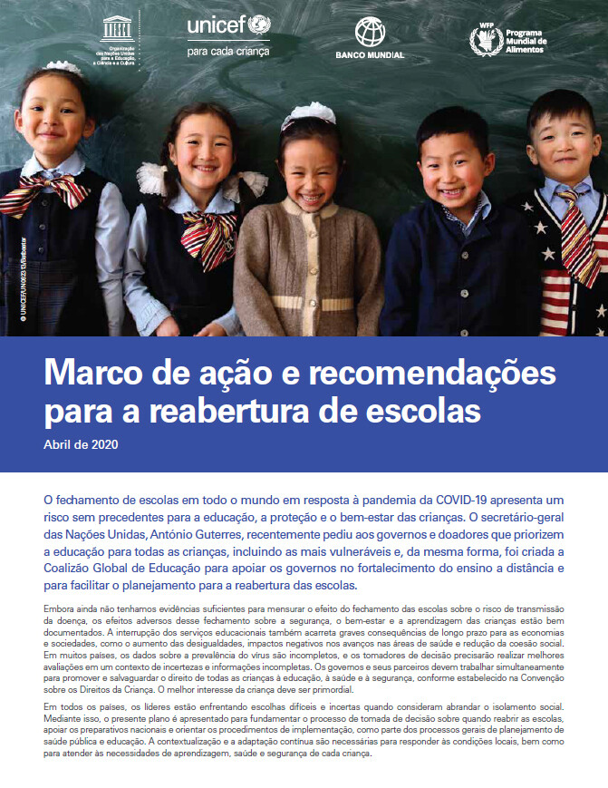 The closure of schools around the world in response to the COVID-19 pandemic poses an unprecedented risk to children’s education, protection and well-being. The United Nations Secretary-General, António Guterres, recently called on governments and donors to prioritize education for all children, including the most vulnerable, and, likewise, a Global Education Coalition was created to support governments in strengthening distance learning and to facilitate the planning of a reopening of schools.